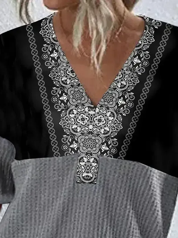 Women's Long Sleeve V-neck Graphic Printed Top