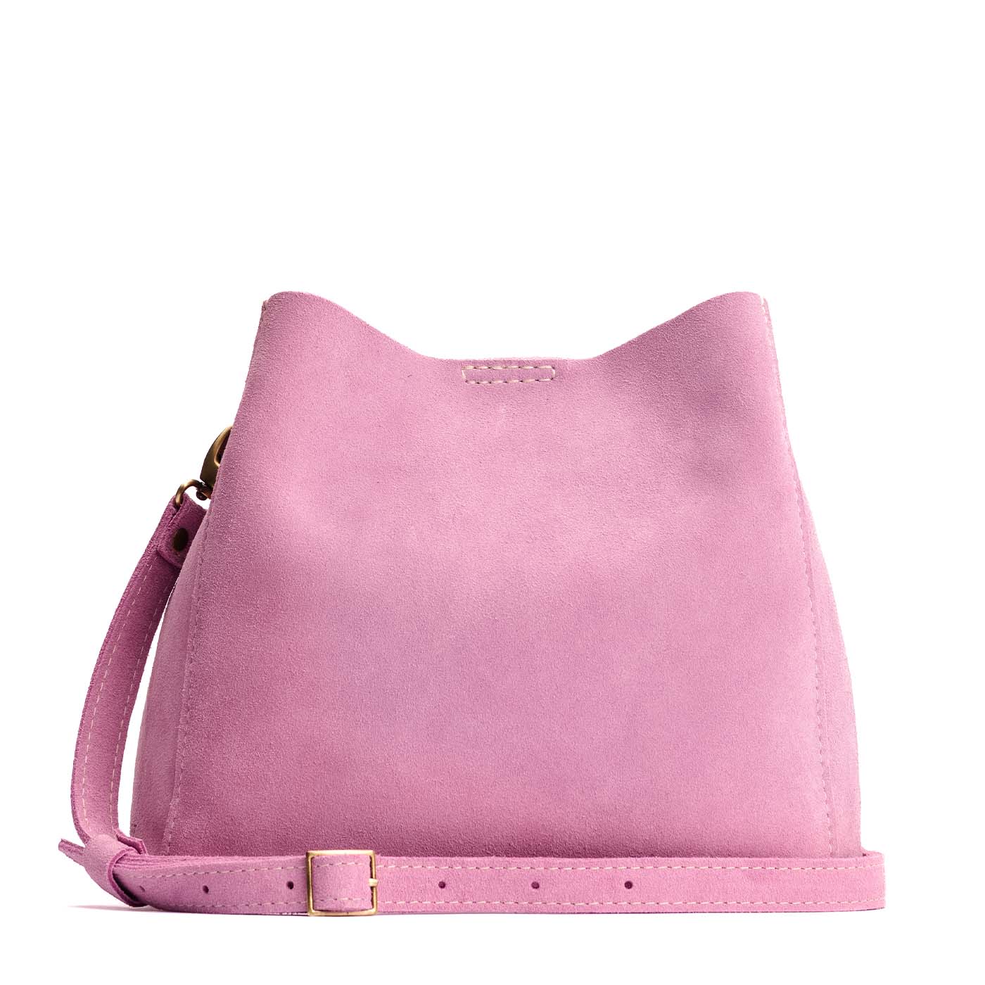 - Spacious bucket shape with delicate brass-toned hardware accents
