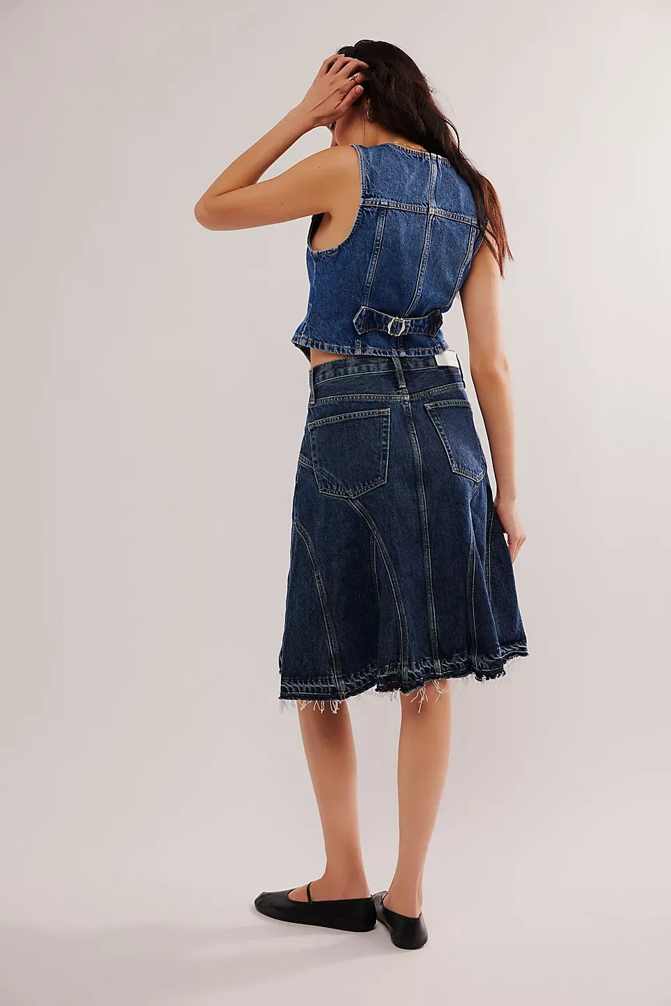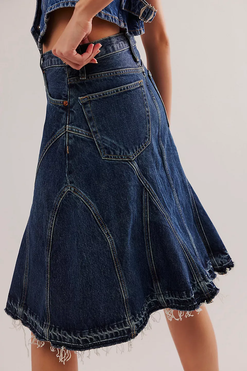 Forever cool with vintage-inspired charm, this timeless skirt from RE/DONE will be a staple from this season to the next.**Fit:** Mid-rise, true A-line fit **Features:** Zip fly and button closure, five-pocket design, seamed detailing throughout, raw-edge frayed hemline **Why We ? It:** Sleek with tall boots or off-duty with sporty sneakers, this style has endless ways to wear.