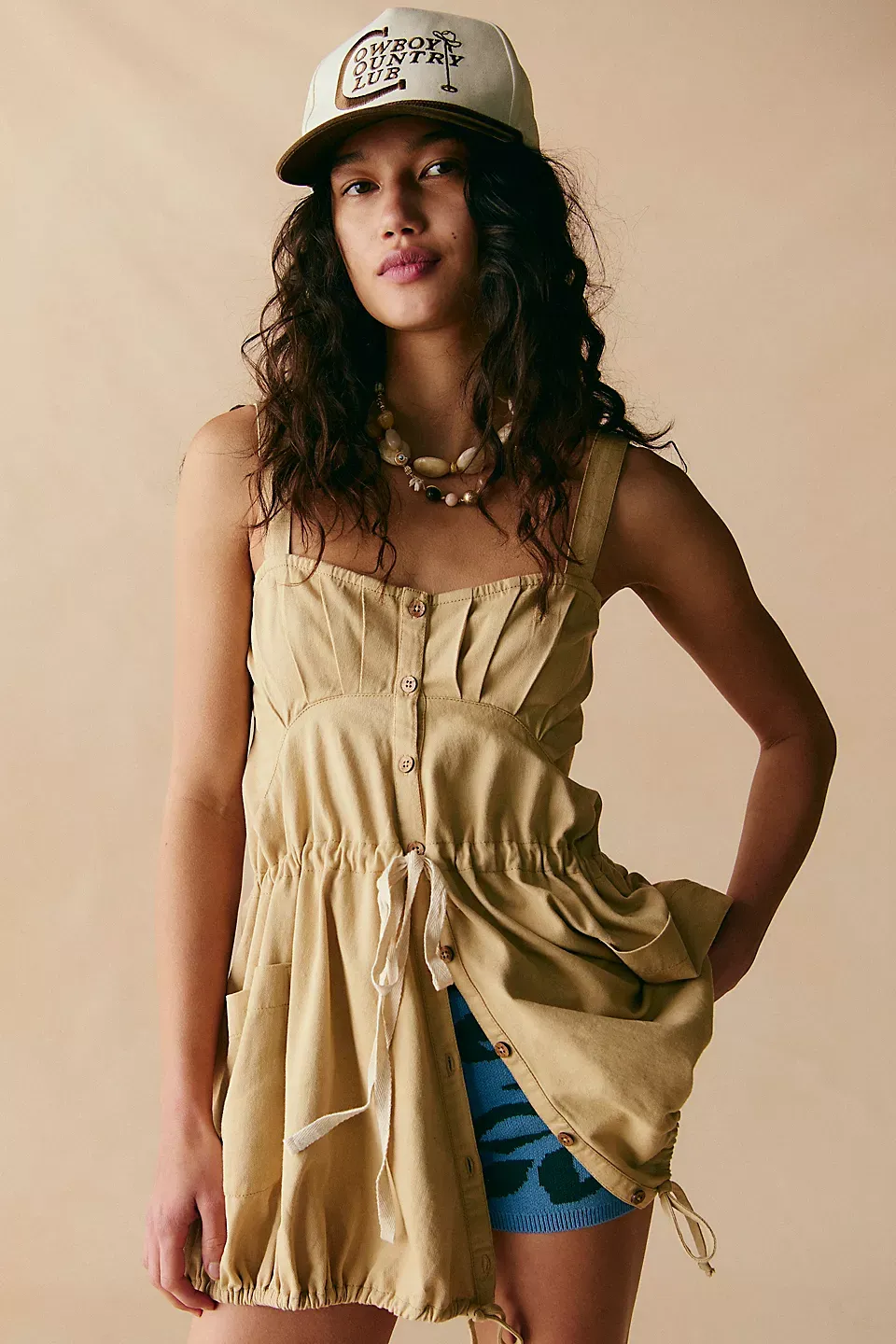 A forever classic free-est style, this stunning tunic is perfect as a super-mini dress or effortless for layering.**Fit:** Relaxed babydoll silhouette **Features:** Sweetheart neckline, button-up closures, front tie detail, dropped pouch pockets **Why We ? It:** A versatile style for every beach bag, you’ll reach for this from the shore to the street.