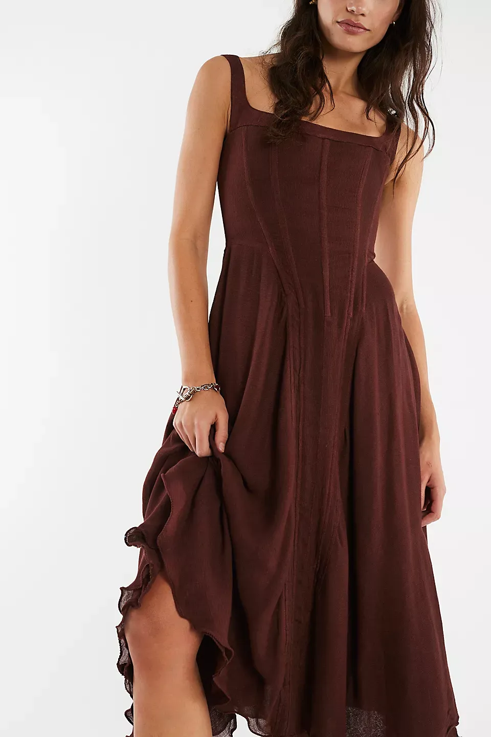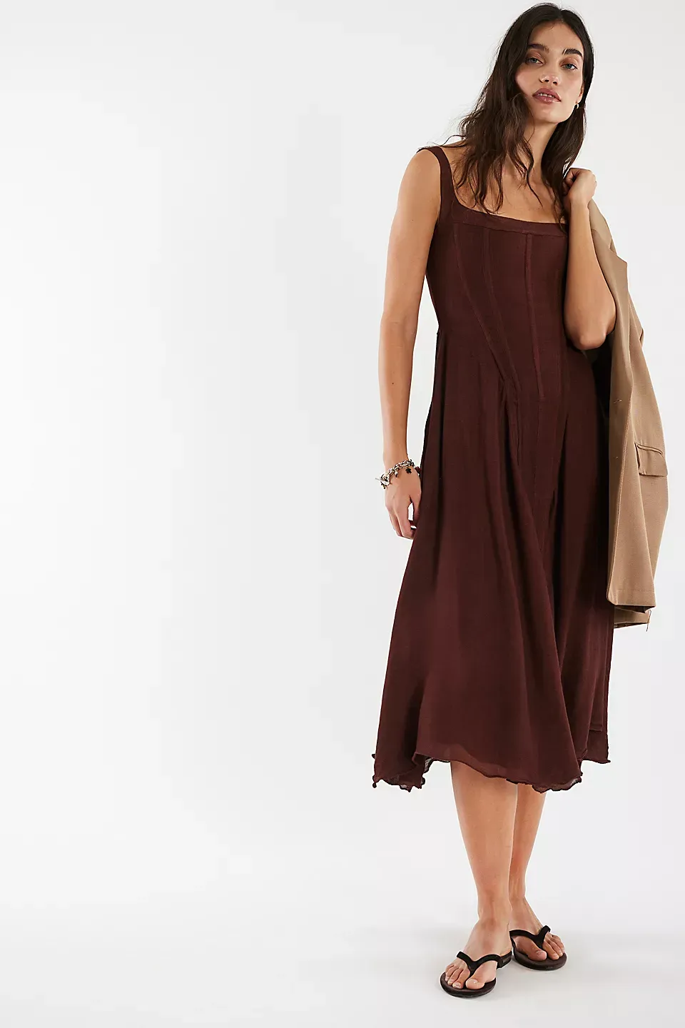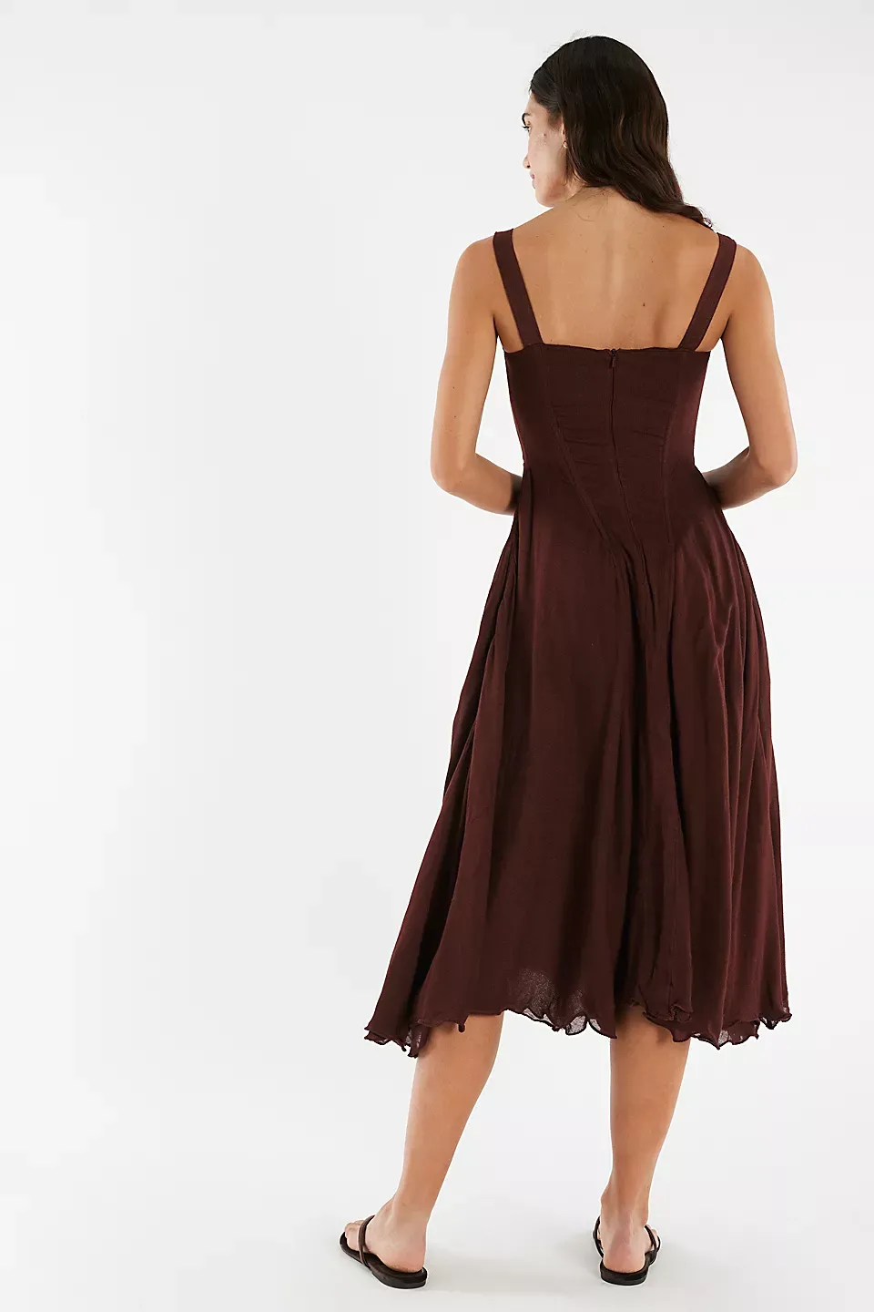 Just as cool as it is classic, this effortlessly essential midi dress is featured in a timeless cotton fabrication with bustier-inspired bodice and flowy bottom detail for a forever femme silhouette. **Fit:** Classic, A-line style **Features:** Square neckline, side pockets; boning at bodice for a corset-inspired look, flowy skirt detail, hidden zip-back closure, lettuce-inspired bottom hem **Why We ? It:** Sure to be a staple in your daily dress rotation, this forever classic style is perfect to pair with anything from a sneaker to a strappy sandal.